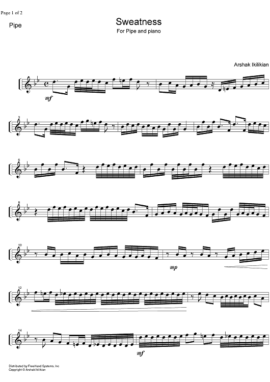 "Sweetness - Pipe" Sheet Music by Arshak Ikilikian
