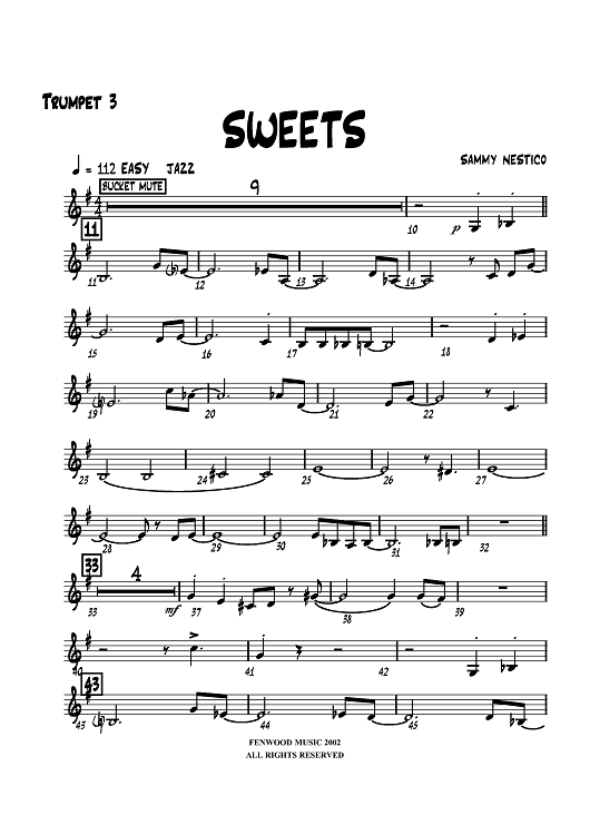 "Sweets - Trumpet 3" Sheet Music by Sammy Nestico