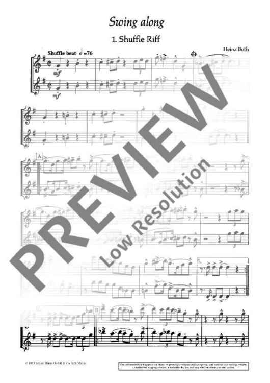 Digital Sheet Music for Swing Along - 1st And 2nd Part In Eb (alto Saxophone, Horn In... by Heinz Both scored for 2 Wind Instruments In Bb Or Eb (clarinets, Saxophones, Trumpets, Flugelhorns, Horns) And Piano; Harmony- And Rhythm Accompanimen; id:473920