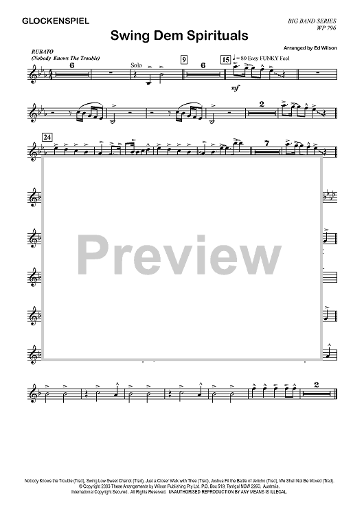 Digital Sheet Music for Swing Dem Spirituals - Glockenspiel by Ed Wilson, Spiritual scored for Jazz Ensemble; id:362514