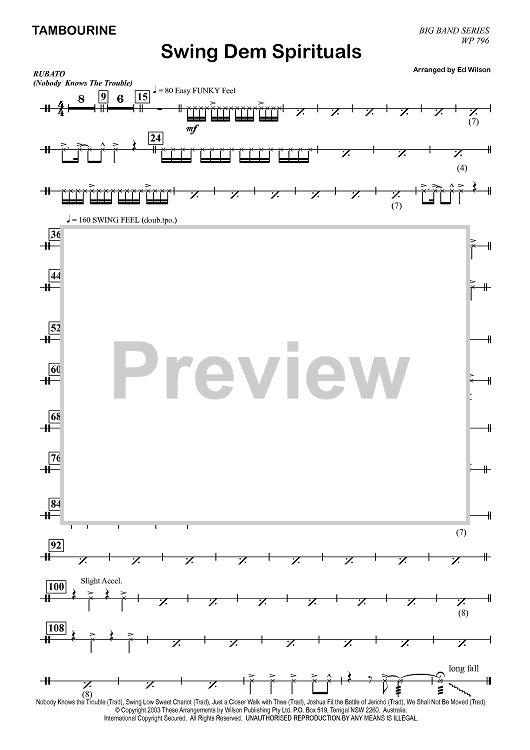 Digital Sheet Music for Swing Dem Spirituals - Tambourine by Ed Wilson, Spiritual scored for Jazz Ensemble; id:362512