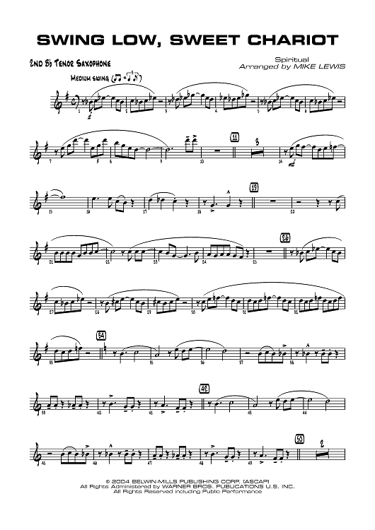 Digital Sheet Music for Swing Low, Sweet Chariot - B-flat Tenor Saxophone 2 by Mike Lewis, Spiritual scored for Jazz Ensemble; id:358834