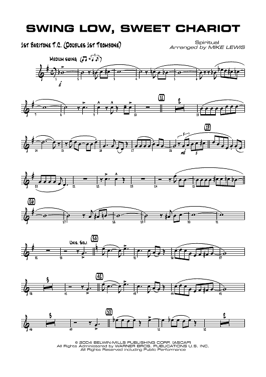 Digital Sheet Music for Swing Low, Sweet Chariot - Baritone 1 TC by Mike Lewis, Spiritual scored for Jazz Ensemble; id:358845