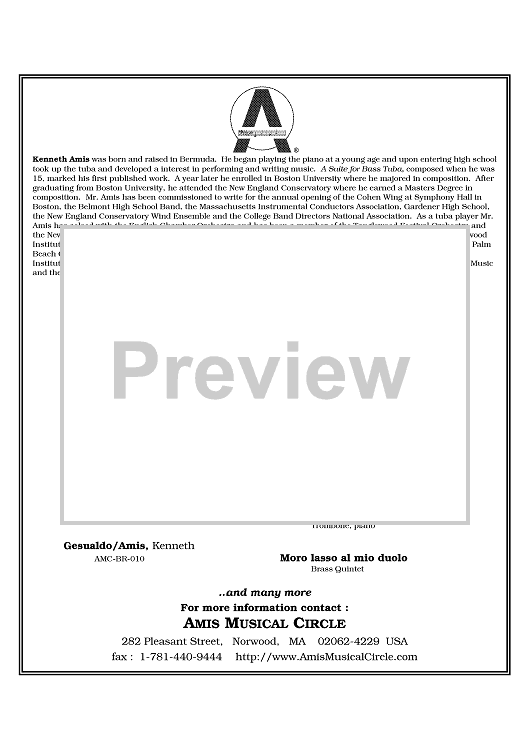 Digital Sheet Music for Swing Low, Sweet Chariot - Introductory Notes by , Traditional, Kenneth Amis scored for Brass Quintet; id:403990
