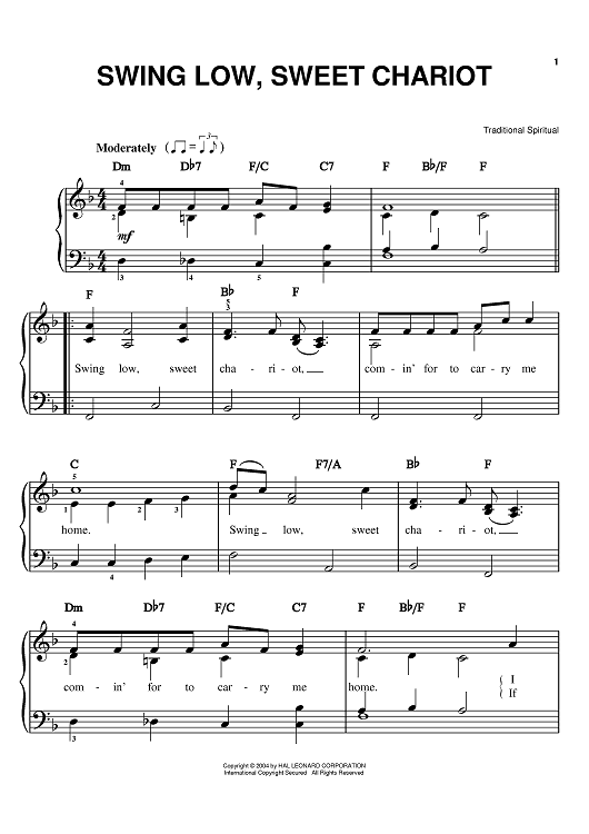 Digital Sheet Music for Swing Low, Sweet Chariot by scored for Easy Piano; id:373874