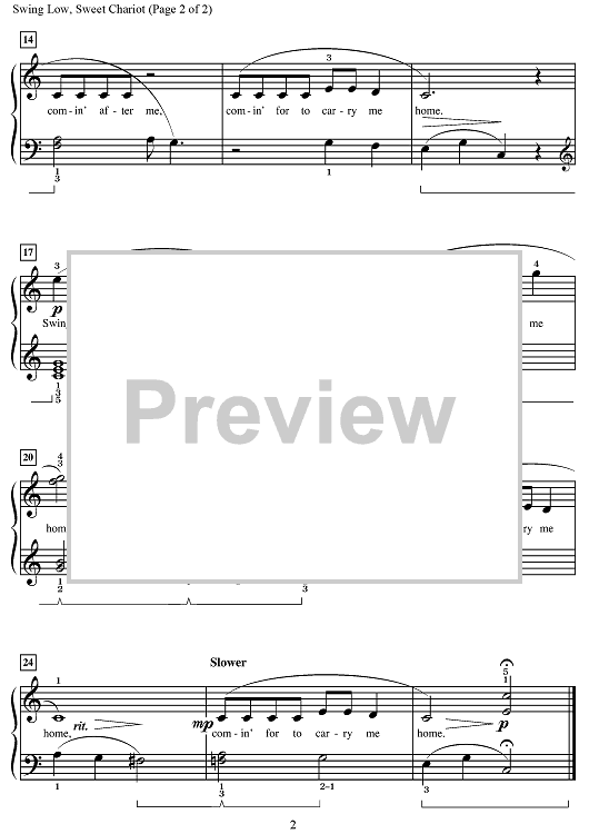 "Swing Low, Sweet Chariot" Sheet Music by Traditional Spiritual