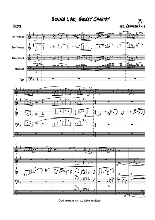 Digital Sheet Music for Swing Low, Sweet Chariot - Score by , Traditional, Kenneth Amis scored for Brass Quintet; id:403989