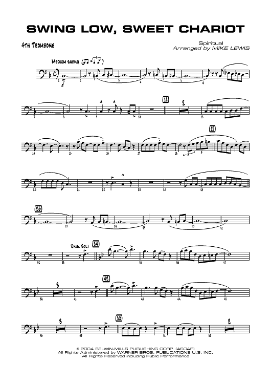 Digital Sheet Music for Swing Low, Sweet Chariot - Trombone 4 by Mike Lewis, Spiritual scored for Jazz Ensemble; id:358843