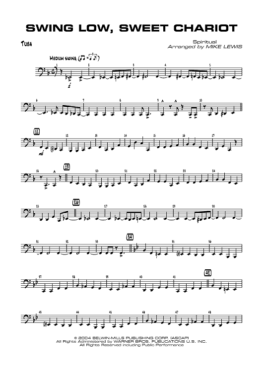 Digital Sheet Music for Swing Low, Sweet Chariot - Tuba by Mike Lewis, Spiritual scored for Jazz Ensemble; id:358847