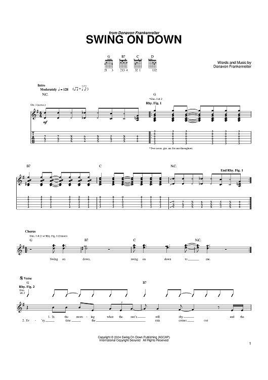 "Swing On Down" Sheet Music by Donavon Frankenreiter