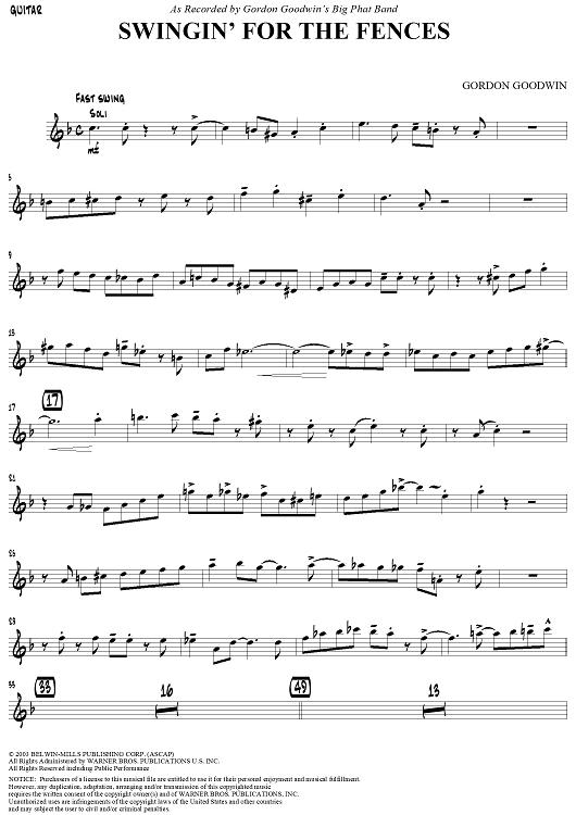 "Swingin' for the Fences - Guitar" Sheet Music by Gordon Goodwin's Big Phat Band