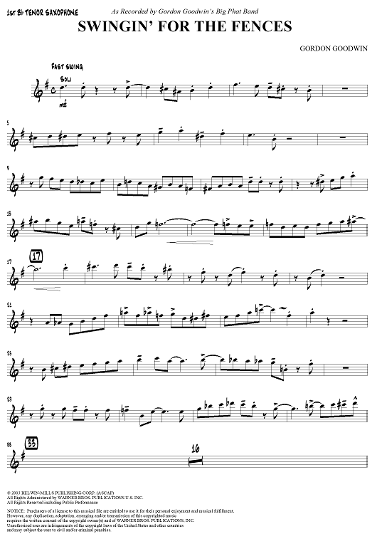 "Swingin' for the Fences - Tenor Saxophone 1" Sheet Music by Gordon Goodwin's Big Phat Band