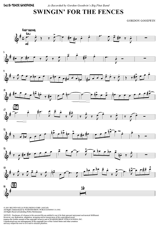 "Swingin' for the Fences - Tenor Saxophone 2" Sheet Music by Gordon Goodwin's Big Phat Band