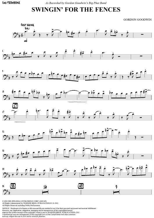 Digital Sheet Music for Swingin' for the Fences - Trombone 2 by Gordon Goodwin, Gordon Goodwin's Big Phat Band scored for Jazz Ensemble; id:308095