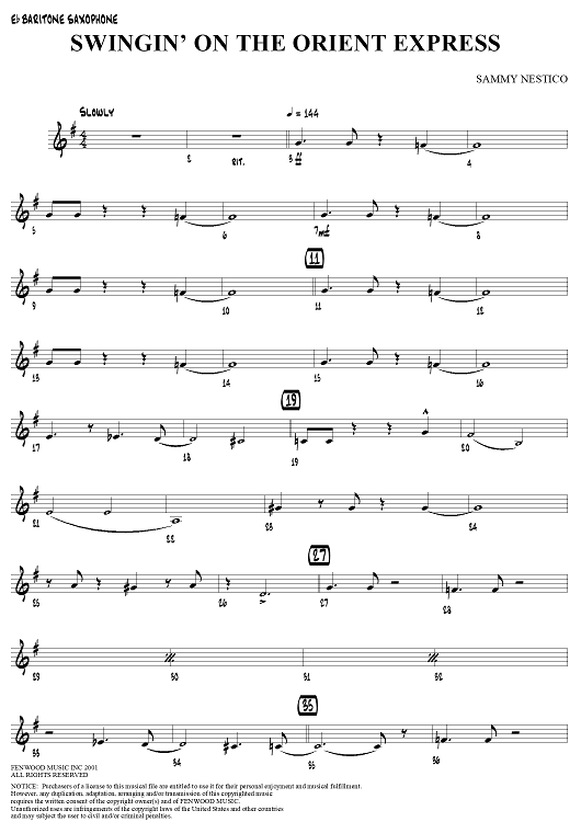 "Swingin' on the Orient Express - Baritone Saxophone" Sheet Music by Sammy Nestico