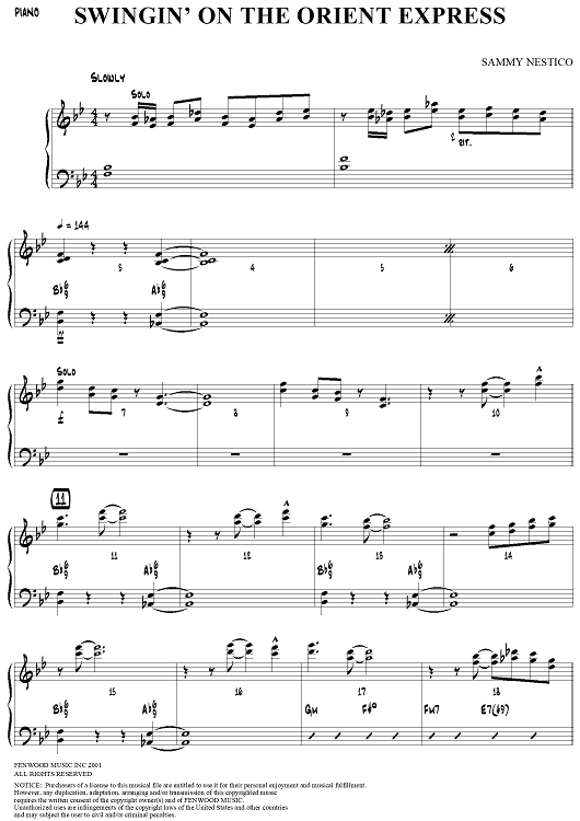"Swingin' on the Orient Express - Piano" Sheet Music by Sammy Nestico