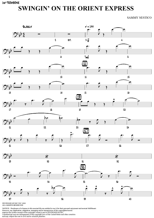 "Swingin' on the Orient Express - Trombone 1" Sheet Music by Sammy Nestico