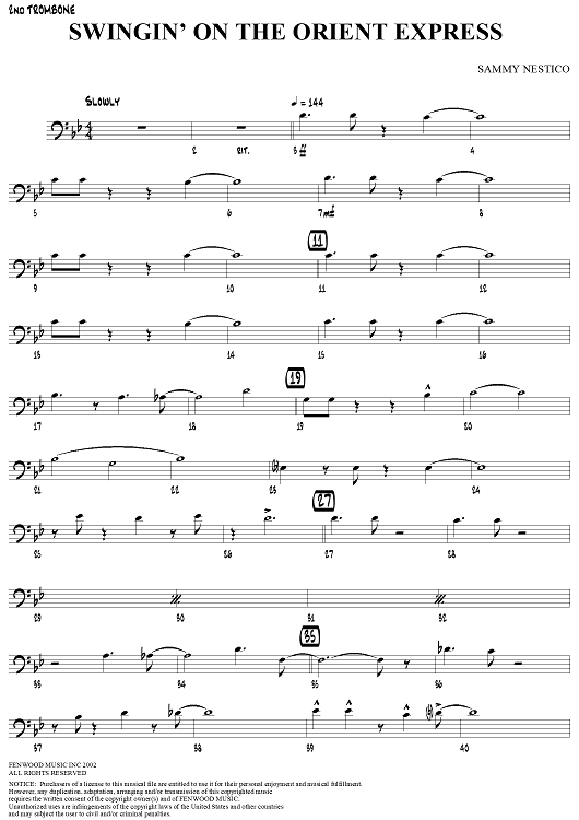 "Swingin' on the Orient Express - Trombone 2" Sheet Music by Sammy Nestico