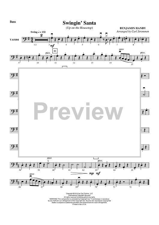 Digital Sheet Music for Swingin’ Santa (Up on the Housetop) - Bass by Carl Strommen, Benjamin Hanby scored for String Orchestra; id:431820