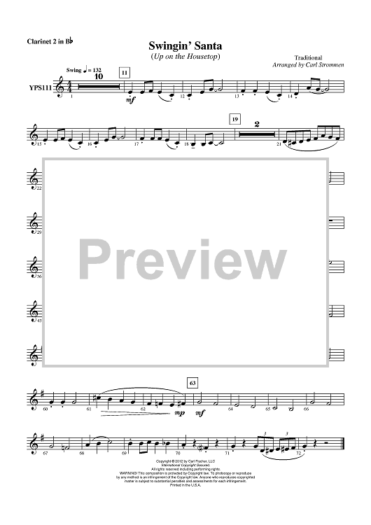 Digital Sheet Music for Swingin’ Santa (Up on the Housetop) - Clarinet 2 in Bb by Carl Strommen, Traditional scored for Concert Band; id:431431
