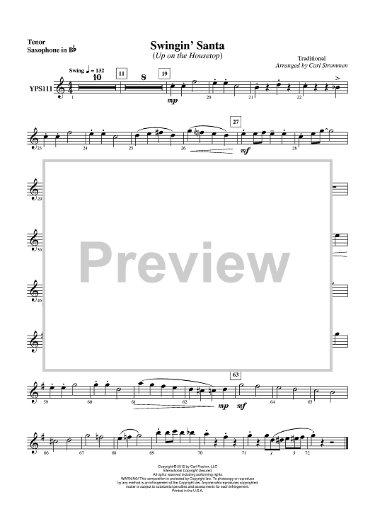 Digital Sheet Music for Swingin’ Santa (Up on the Housetop) - Tenor Sax by Carl Strommen, Traditional scored for Concert Band; id:431435