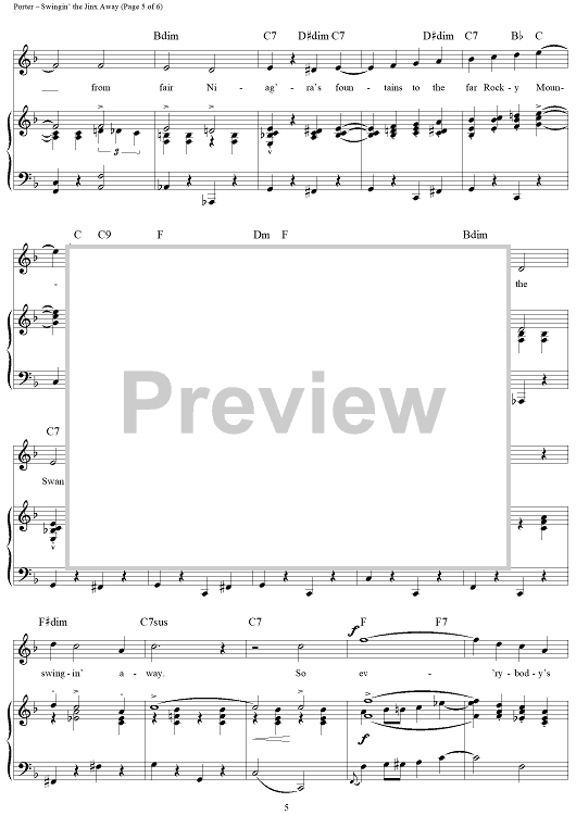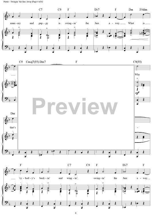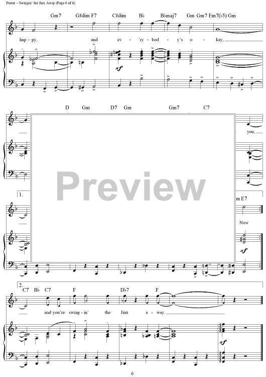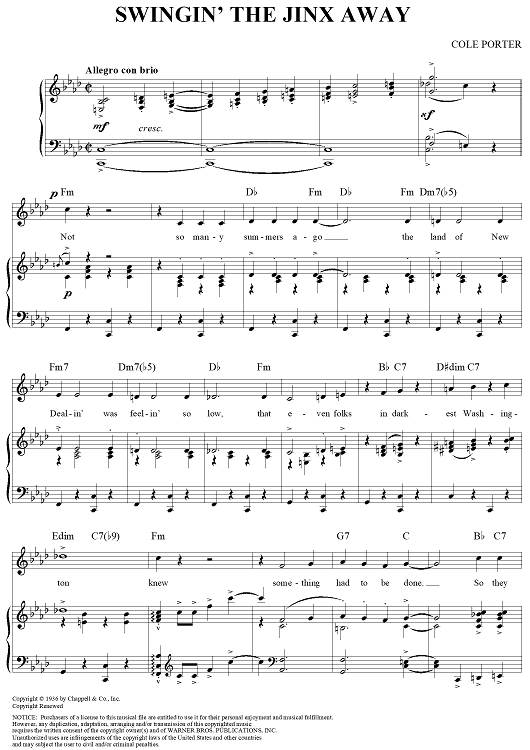 Digital Sheet Music for Swingin' the Jinx Away by Cole Porter scored for Piano/Vocal/Chords; id:320763