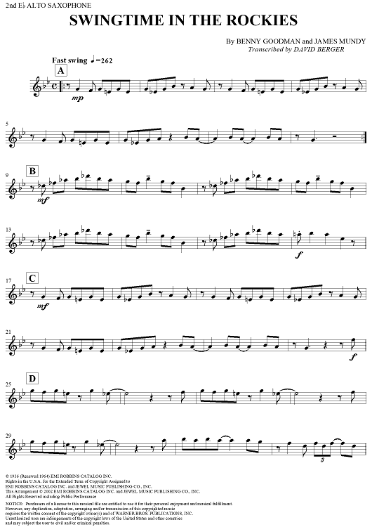 "Swingtime in the Rockies - Alto Saxophone 2" Sheet Music by Benny Goodman