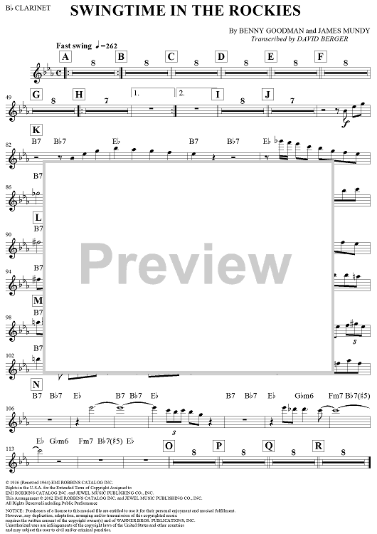 "Swingtime in the Rockies - Clarinet" Sheet Music by Benny Goodman
