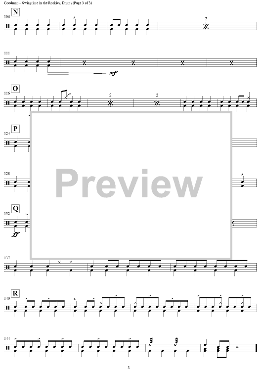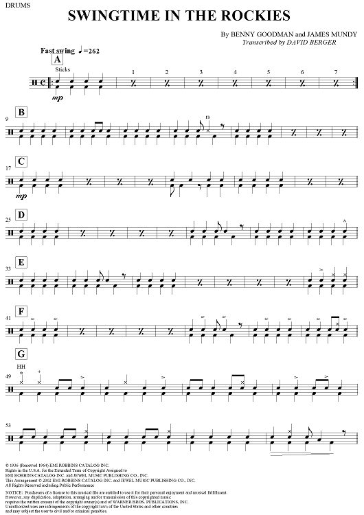 "Swingtime in the Rockies - Drums" Sheet Music by Benny Goodman