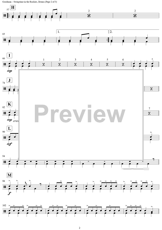 Digital Sheet Music for Swingtime in the Rockies - Drums by Benny Goodman, James Mundy scored for Jazz Ensemble; id:310158