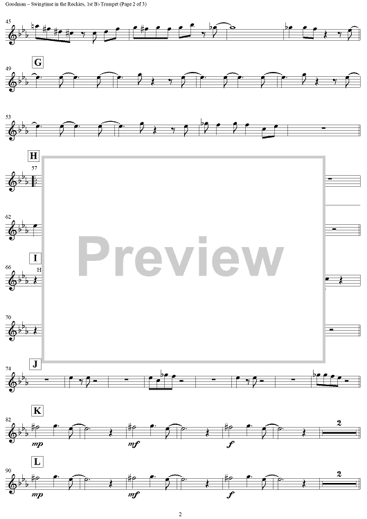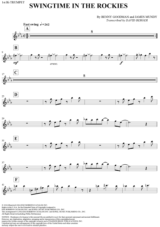 "Swingtime in the Rockies - Trumpet 1" Sheet Music by Benny Goodman