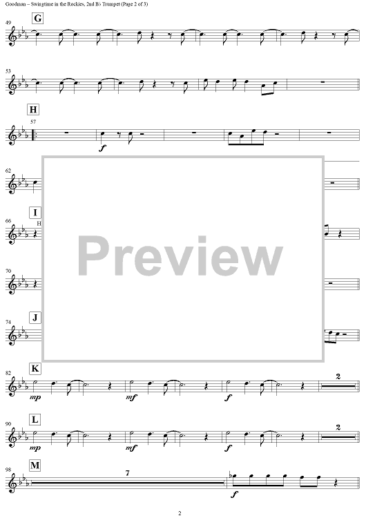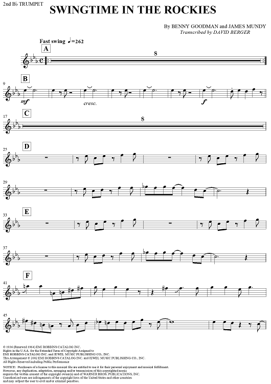 "Swingtime in the Rockies - Trumpet 2" Sheet Music by Benny Goodman