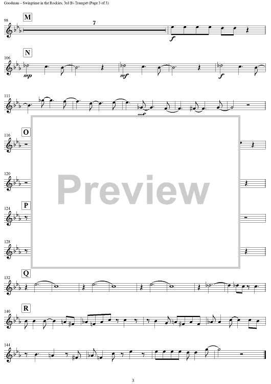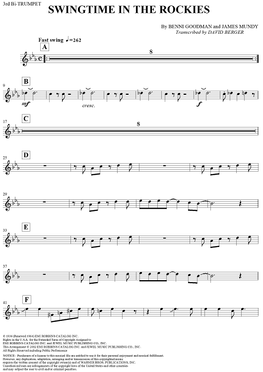 "Swingtime in the Rockies - Trumpet 3" Sheet Music by Benny Goodman