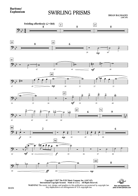 Digital Sheet Music for Swirling Prisms - Baritone / Euphonium by Brian Balmages scored for Concert Band; id:510353