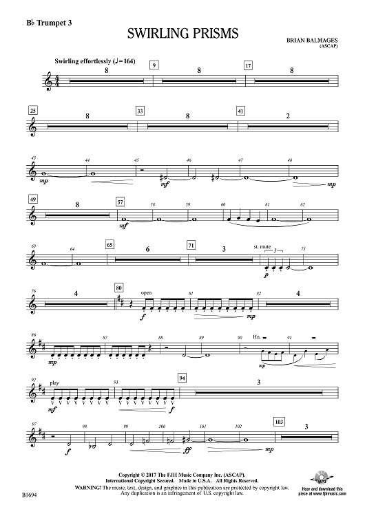 "Swirling Prisms - Bb Trumpet 3" Sheet Music by Brian Balmages
