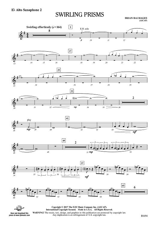 "Swirling Prisms - Eb Alto Saxophone 2" Sheet Music by Brian Balmages