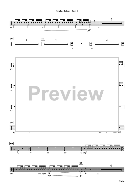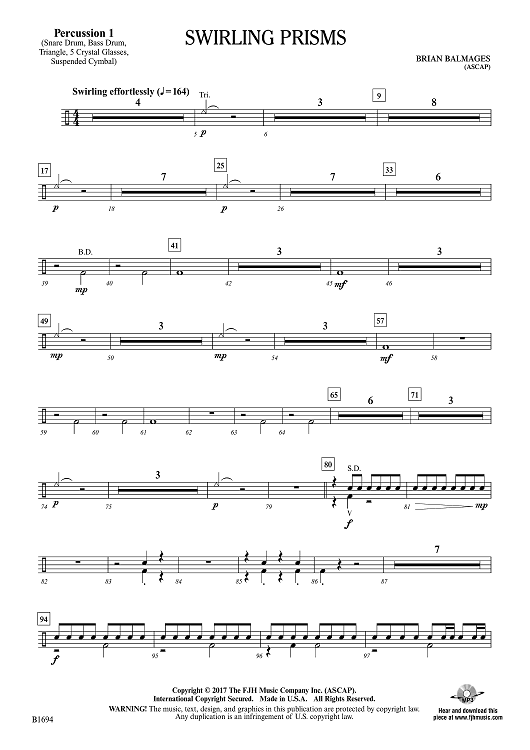 Digital Sheet Music for Swirling Prisms - Percussion 1 by Brian Balmages scored for Concert Band; id:510362