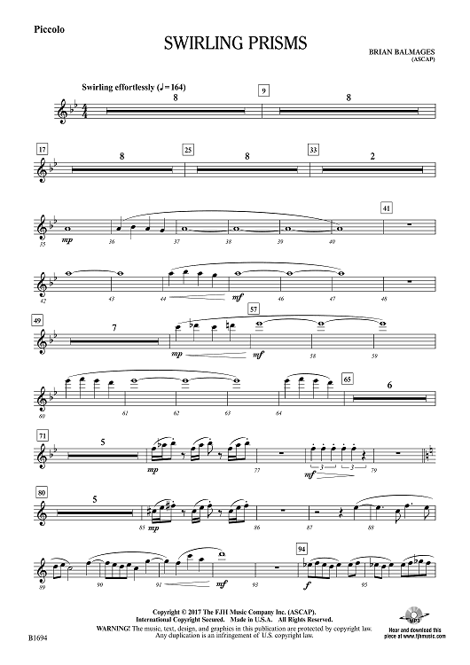 "Swirling Prisms - Piccolo" Sheet Music by Brian Balmages