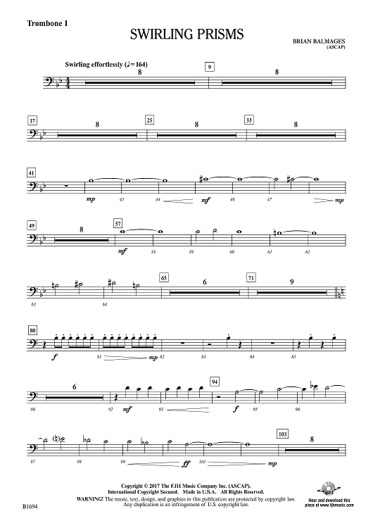 "Swirling Prisms - Trombone 1" Sheet Music by Brian Balmages