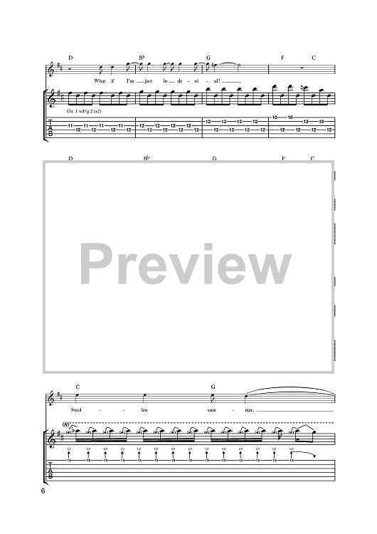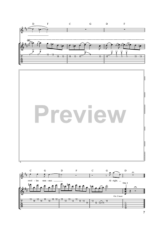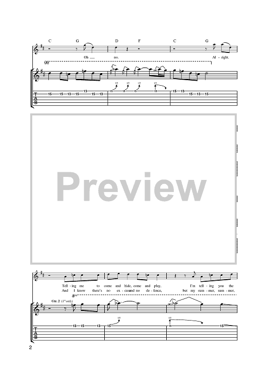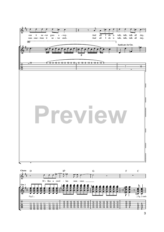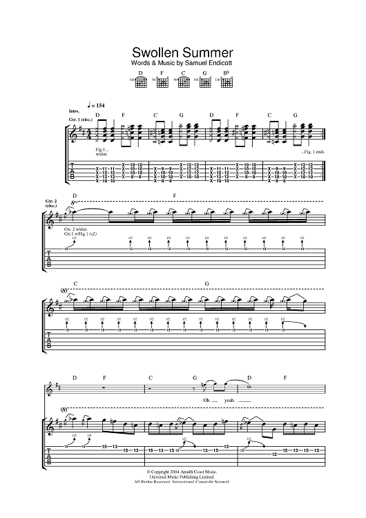 Digital Sheet Music for Swollen Summer by The Bravery, Samuel Endicott scored for Guitar Tab; id:386386