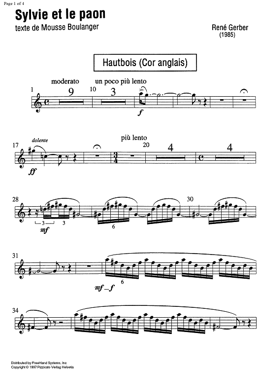 "Sylvie et le paon - Oboe" Sheet Music by René Gerber