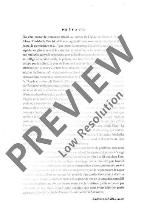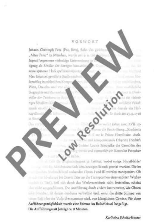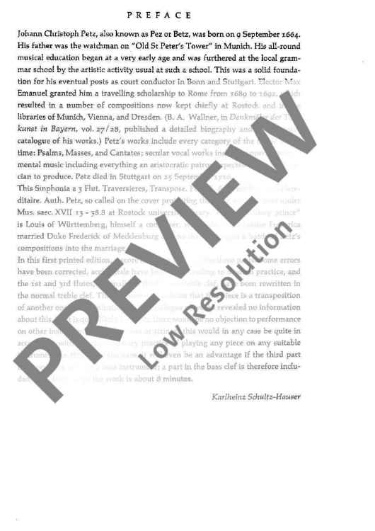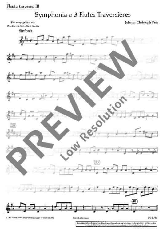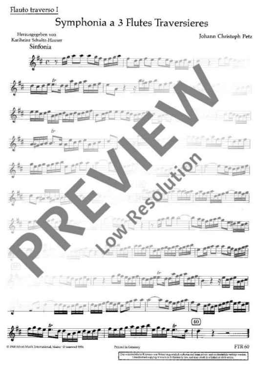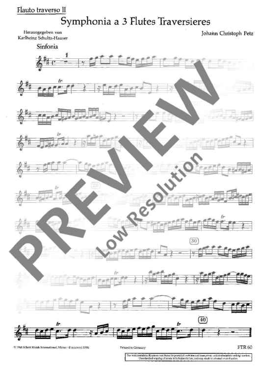 "Symphonia à 3 Flutes traversières" Sheet Music by Johann Christoph Pez