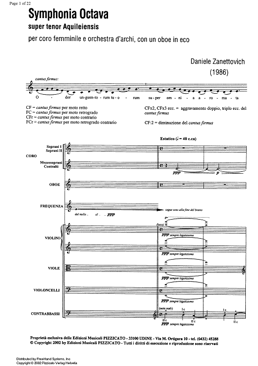 Digital Sheet Music for Symphonia Octava - Full Score by , Daniele Zanettovich scored for Female Chorus/Oboe/Strings; id:343396
