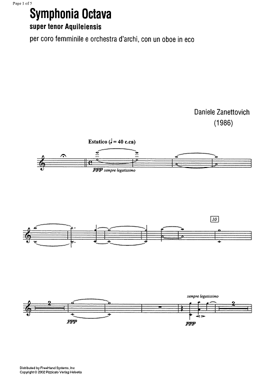 Digital Sheet Music for Symphonia Octava - Violin 2 by , Daniele Zanettovich scored for Female Chorus/Oboe/Strings; id:343399