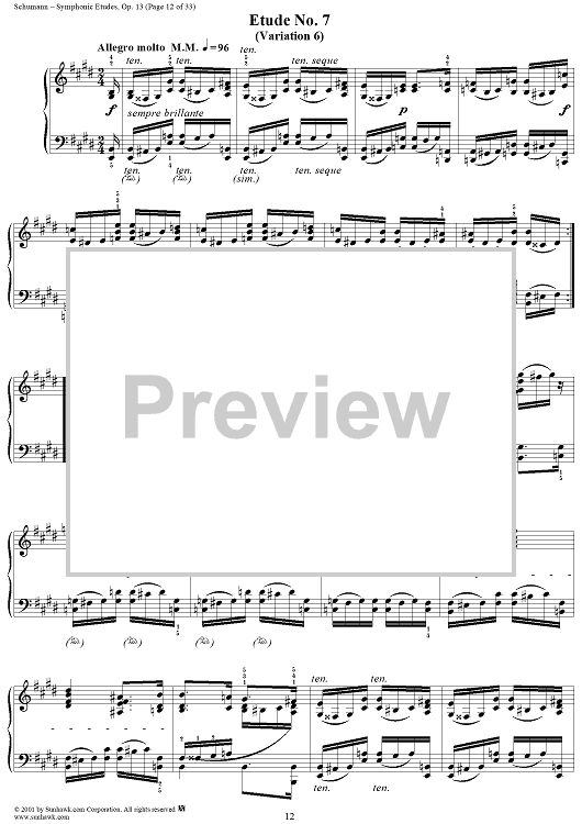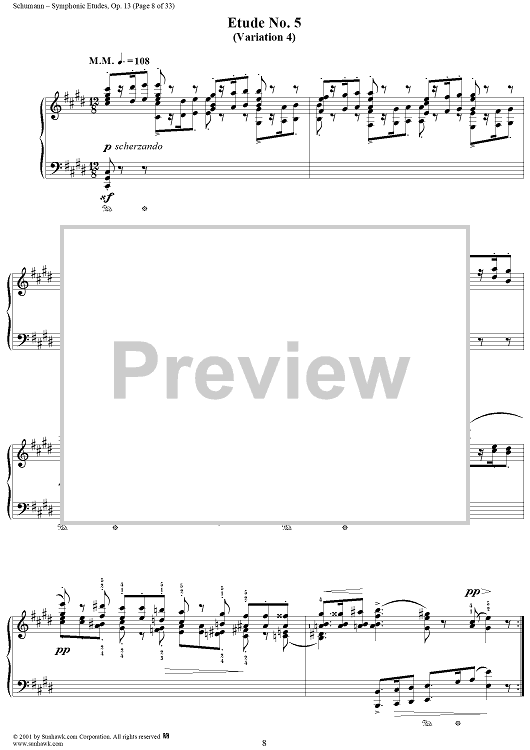 Digital Sheet Music for Symphonic Etudes, Op. 13 (Theme & Variations) by Robert Schumann scored for Piano Solo; id:287627
