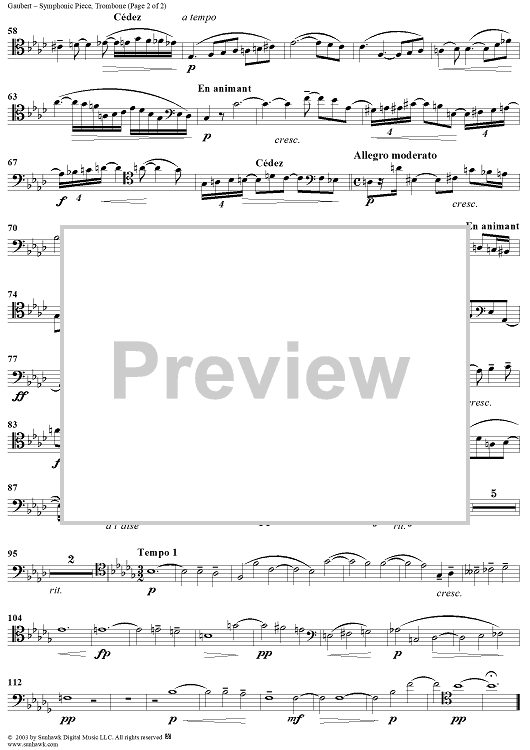Digital Sheet Music for Symphonic Piece - Trombone by Philippe Gaubert scored for Trombone/Piano; id:295155