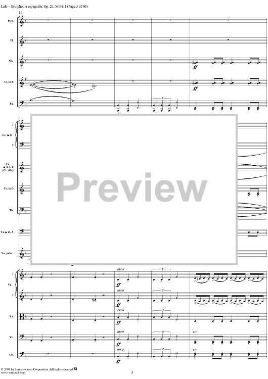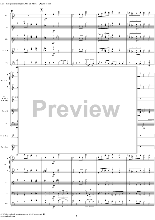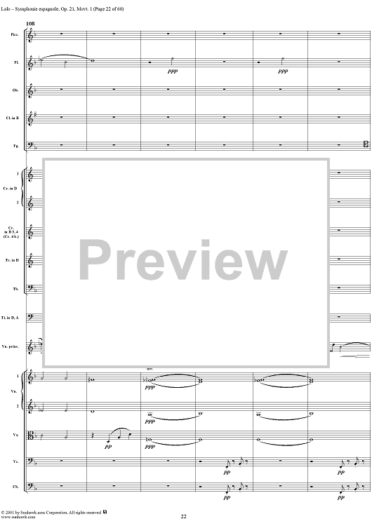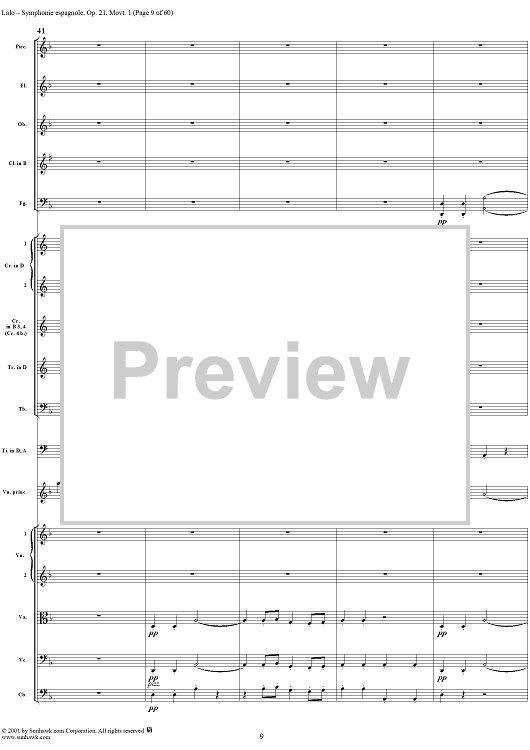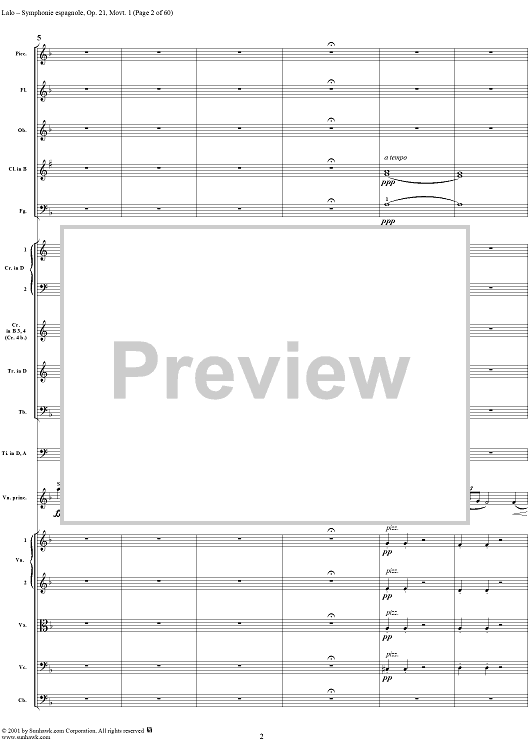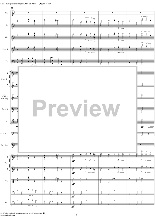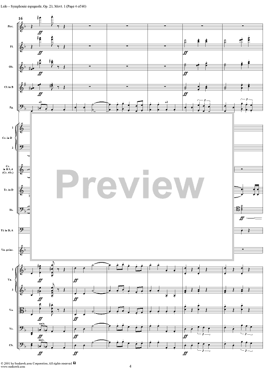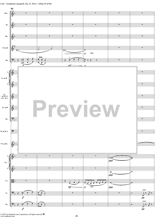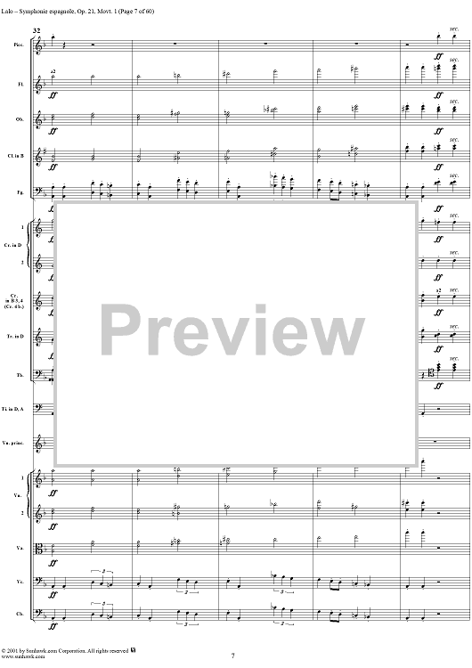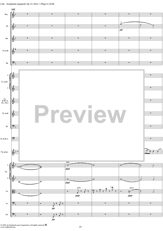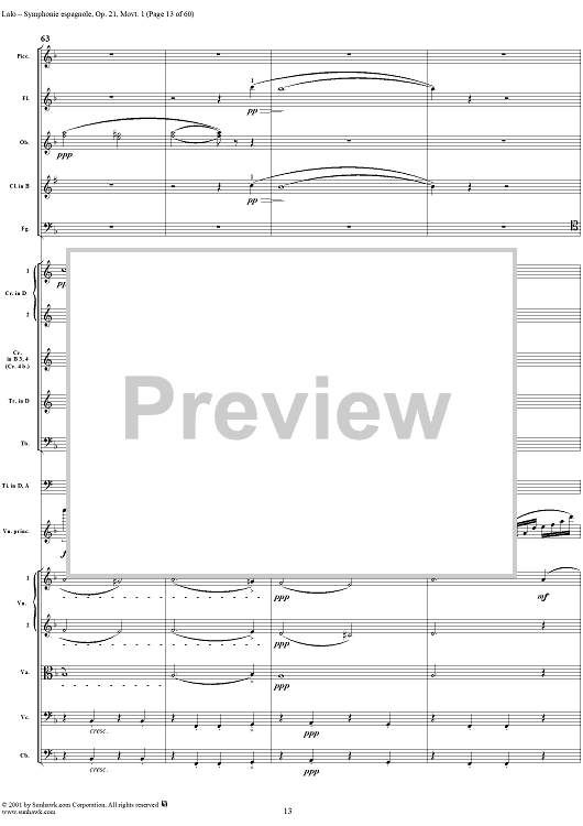 Digital Sheet Music for Symphonie Espagnole, Op. 21: Movement 1 - Full Score by Edouard Victoire Antoine Lalo scored for Violin/Orchestra; id:250406