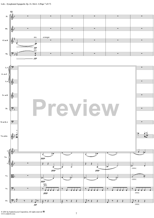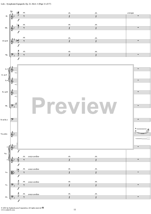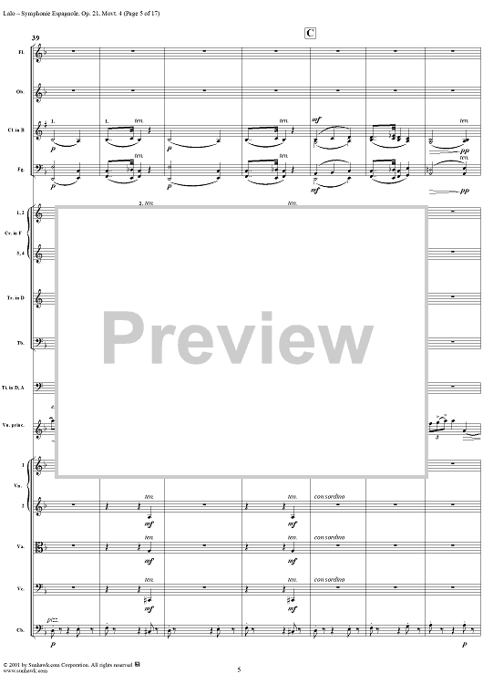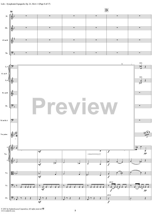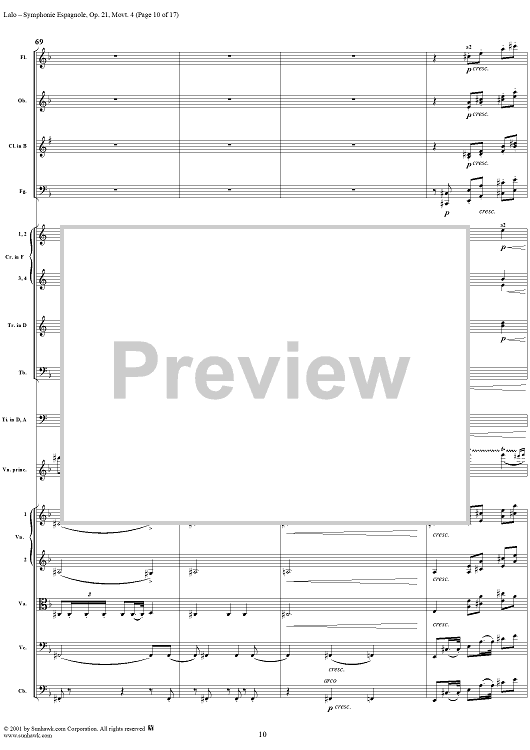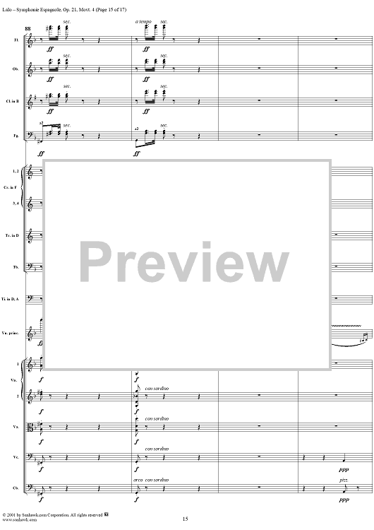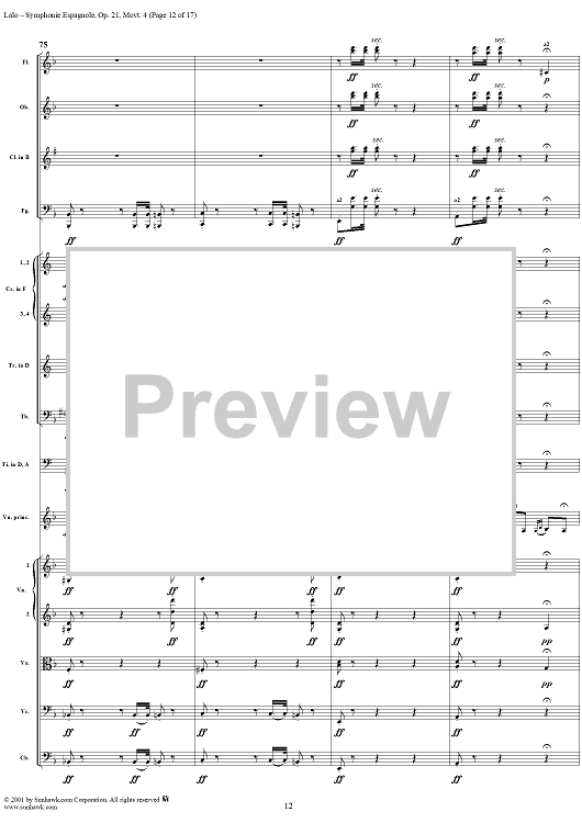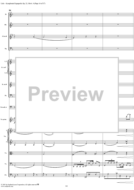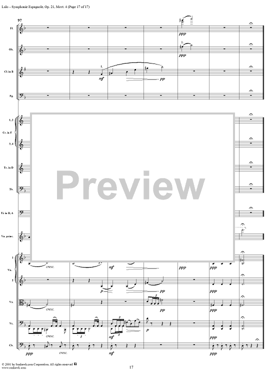 Digital Sheet Music for Symphonie Espagnole, Op. 21: Movement 4 - Full Score by Edouard Victoire Antoine Lalo scored for Violin/Orchestra; id:250402