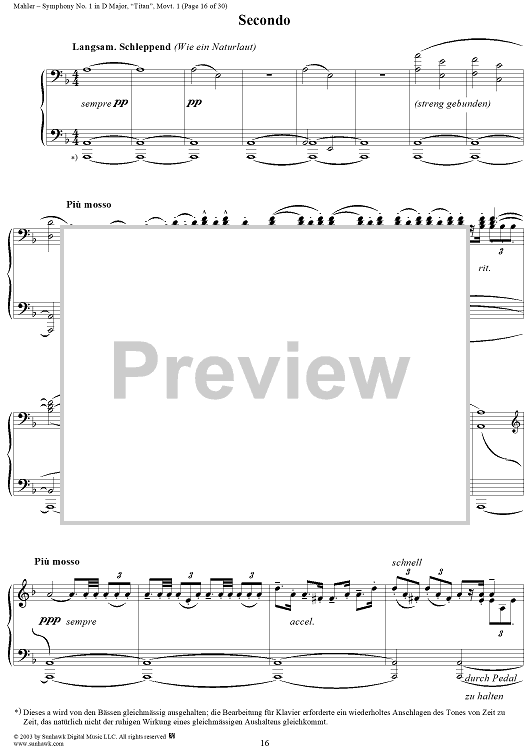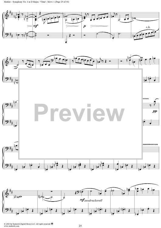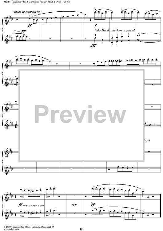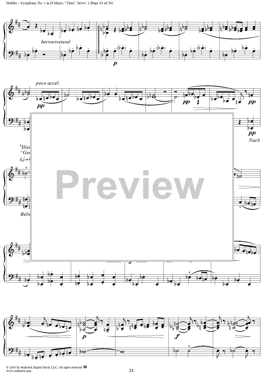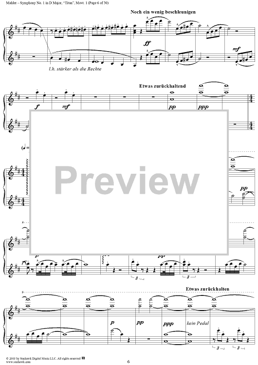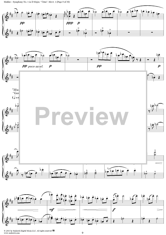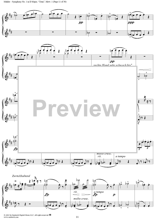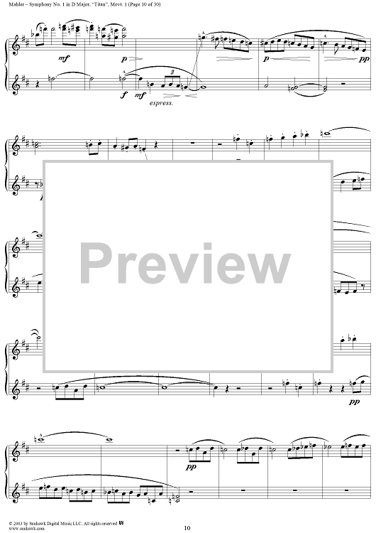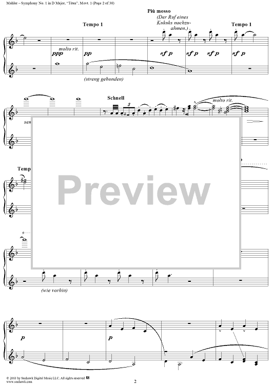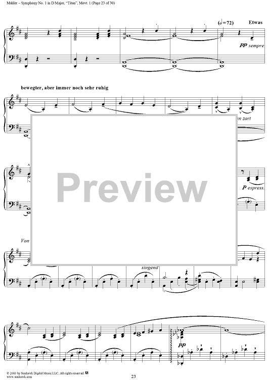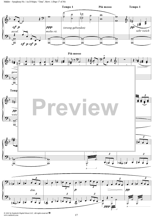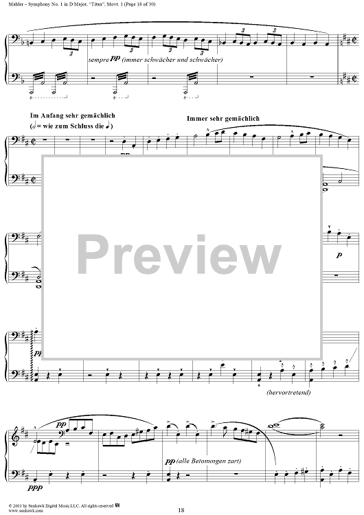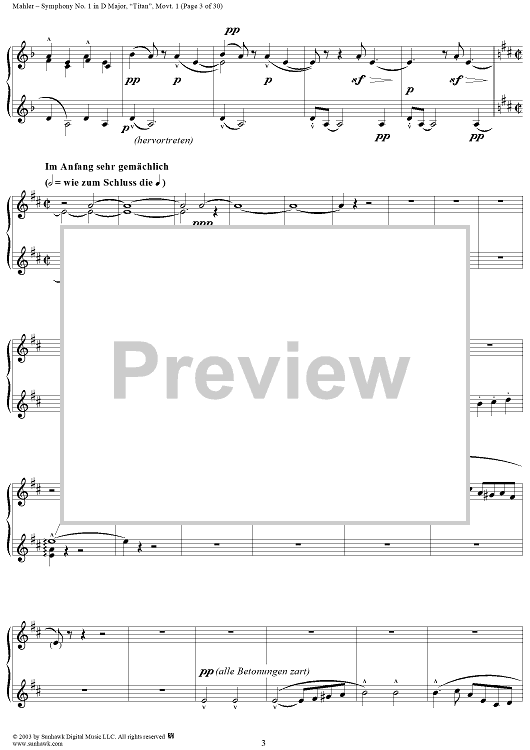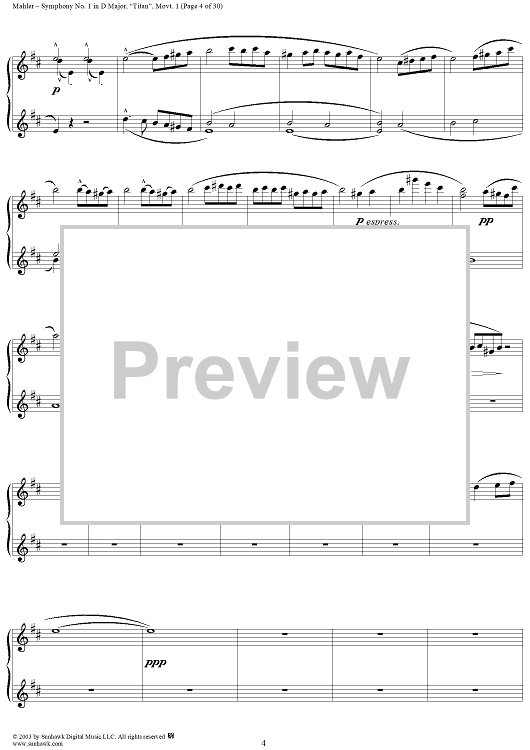 Digital Sheet Music for Symphony No. 1 in D Major, "Titan", Movement 1 by Gustav Mahler scored for 1 Piano, 4 Hands; id:294536