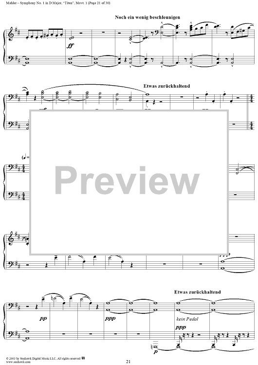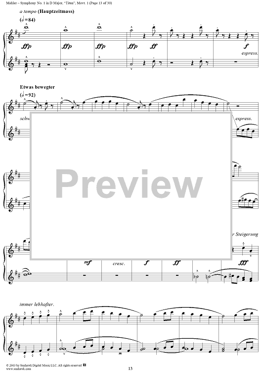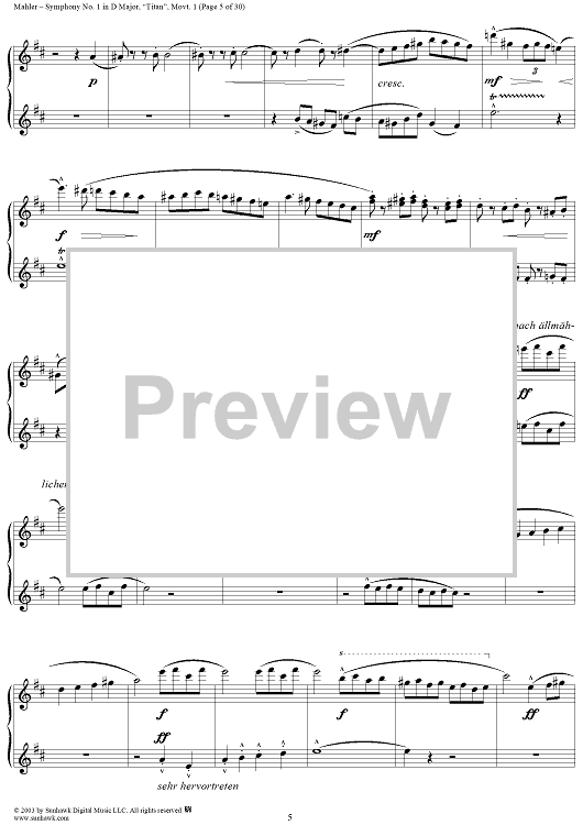 "Symphony No. 1 in D Major, "Titan", Movement 1" Sheet Music by Gustav Mahler